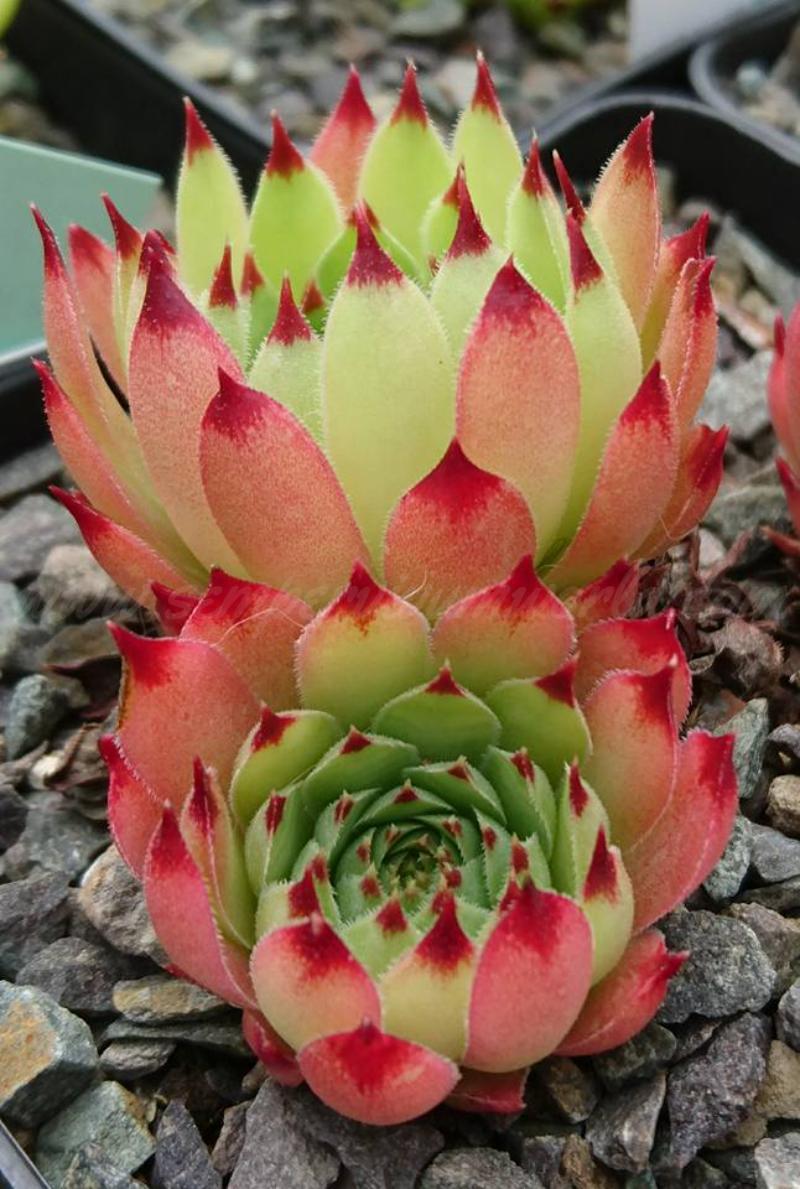 calcareum from Daluis Februar 17, 2026 Fund aus den beeindruckenden Gorges du Daluis bei Guillaumes (Alpes-Maritimes) – kompakte bis mittelgroße Rosetten in frischem blau-grün mit markant abgesetzten, dunkelroten bis burgundy-roten Blattspitzen.