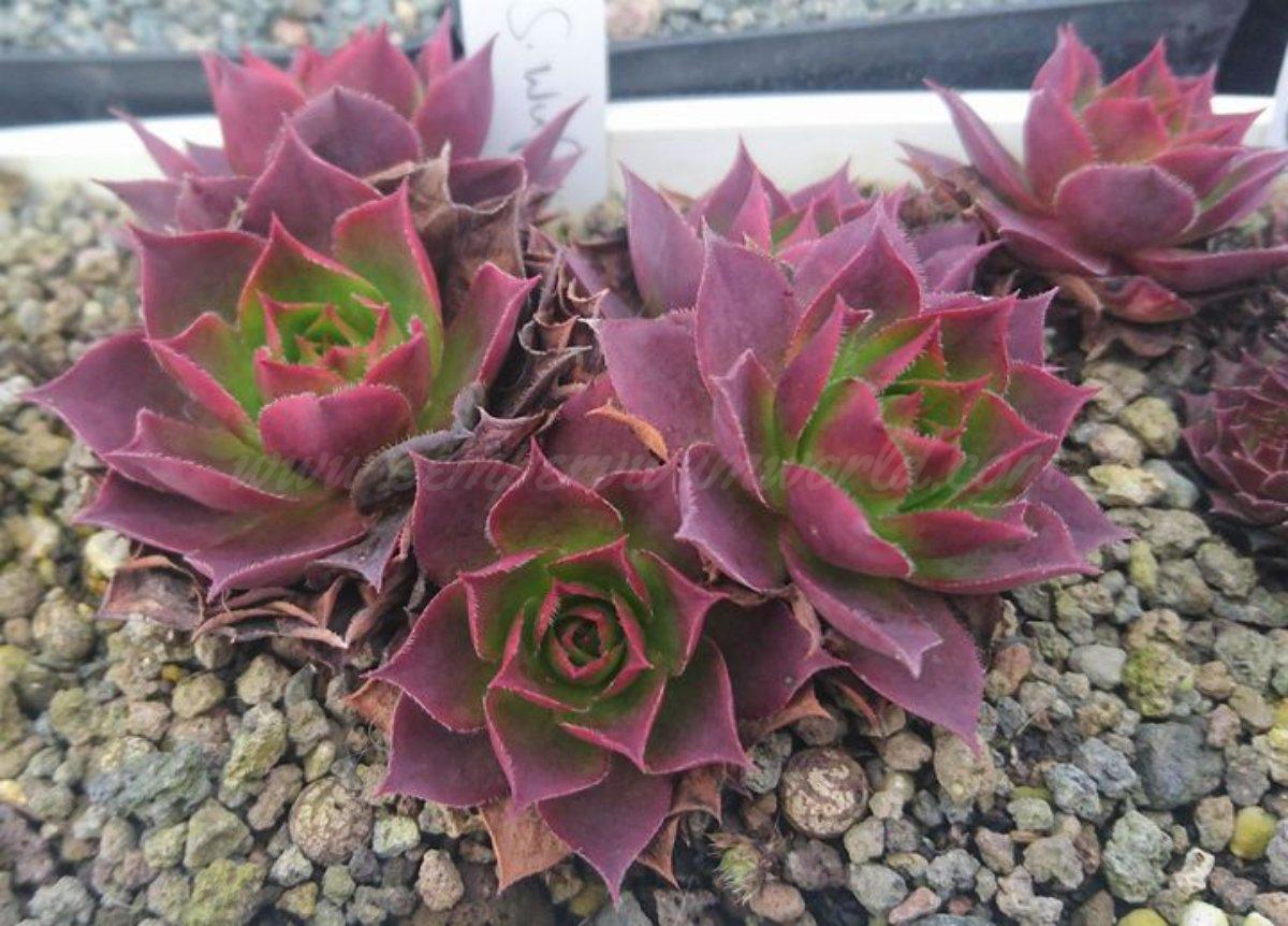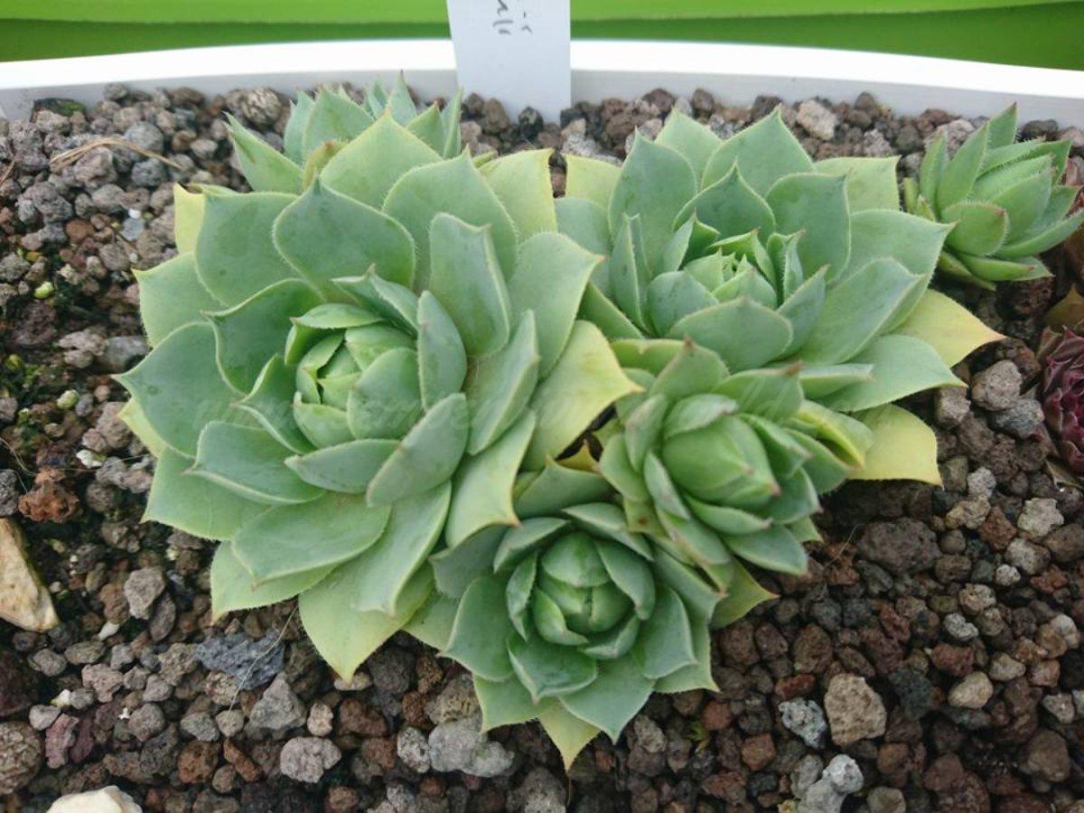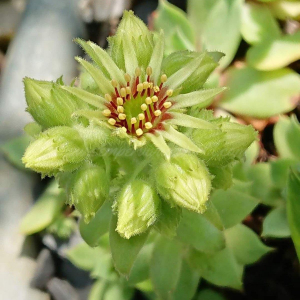 Die klassische Wulfen-Hauswurz aus den Ostalpen – kompakte, grau-grüne Rosetten mit roter Frühjahrsfärbung und bewimperten Blatträndern. Besonders auffällig: die seltenen zitronengelben Blüten! Ein robuster Überlebenskünstler der Hochalpen, der auf sauren Felsen in 1500–2800 m Höhe zu Hause ist.