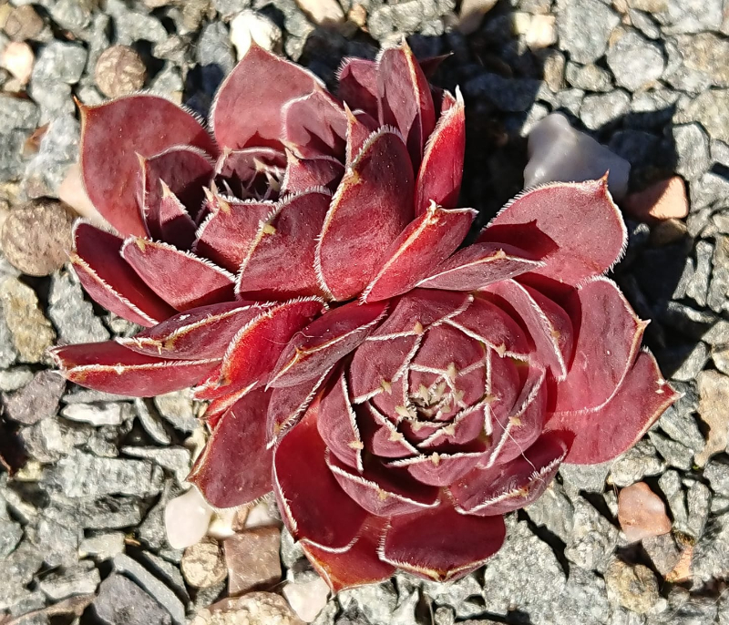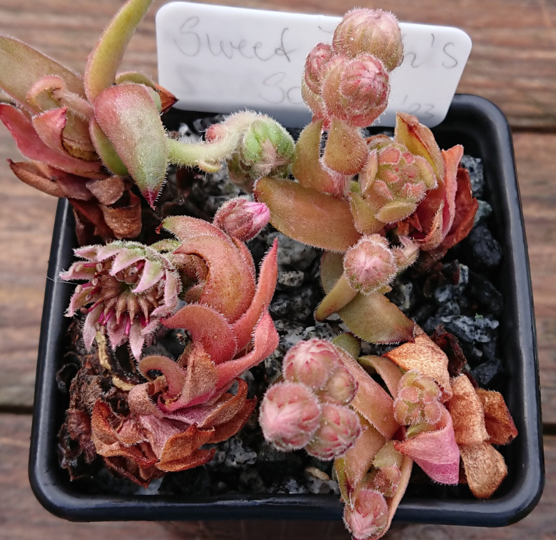 Sempervivum ‚Kiwi‘ – nur ein Viertel ist verloren gegangen. Die anderen drei haben sich super erholt, neue Kindel getrieben und die Linie gerettet.